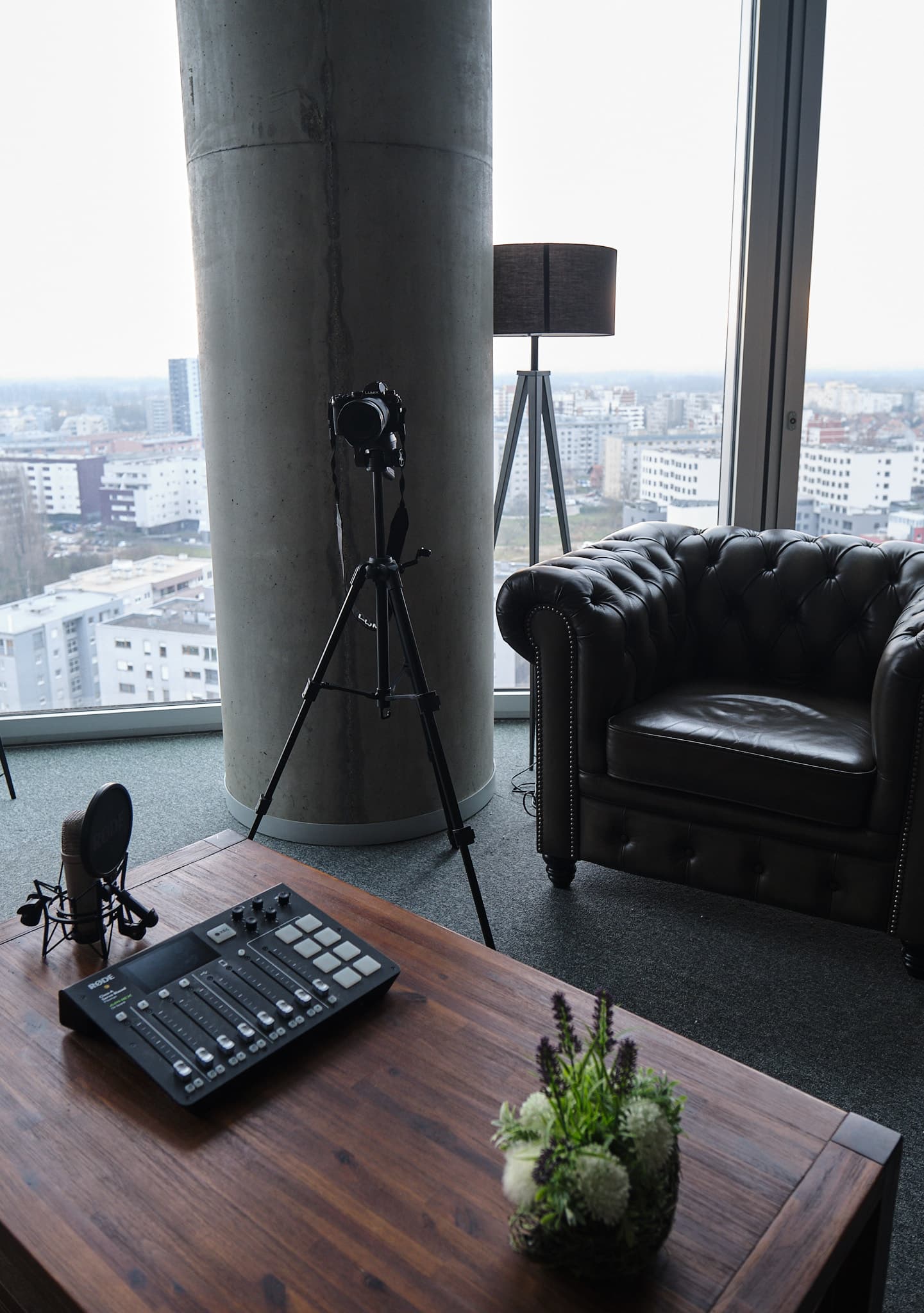 Premium podcast studio s pogledom na grad